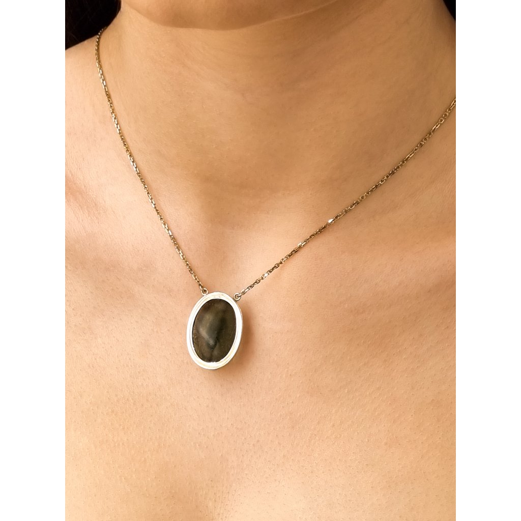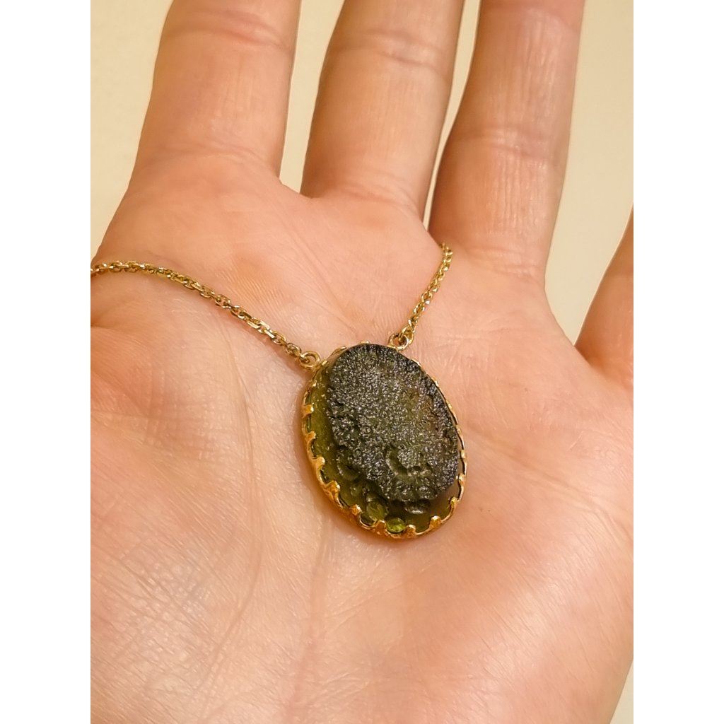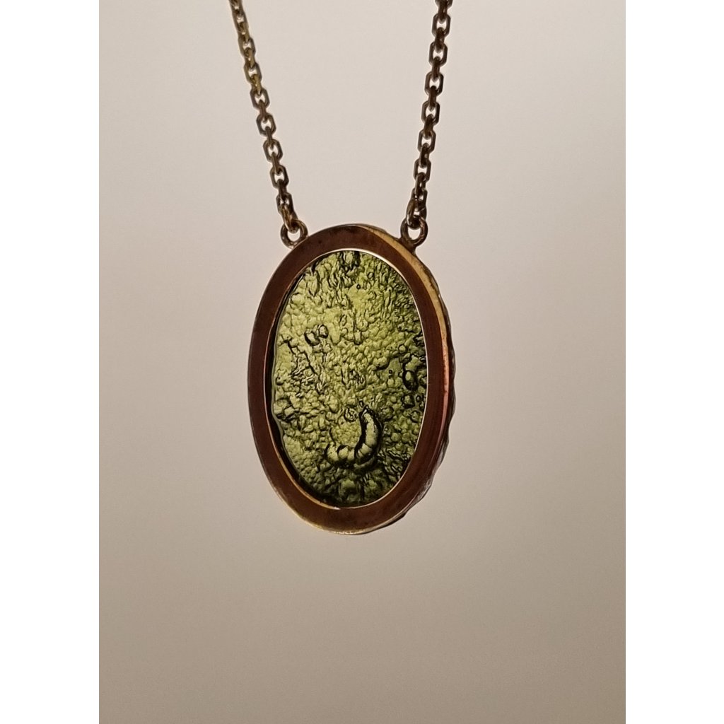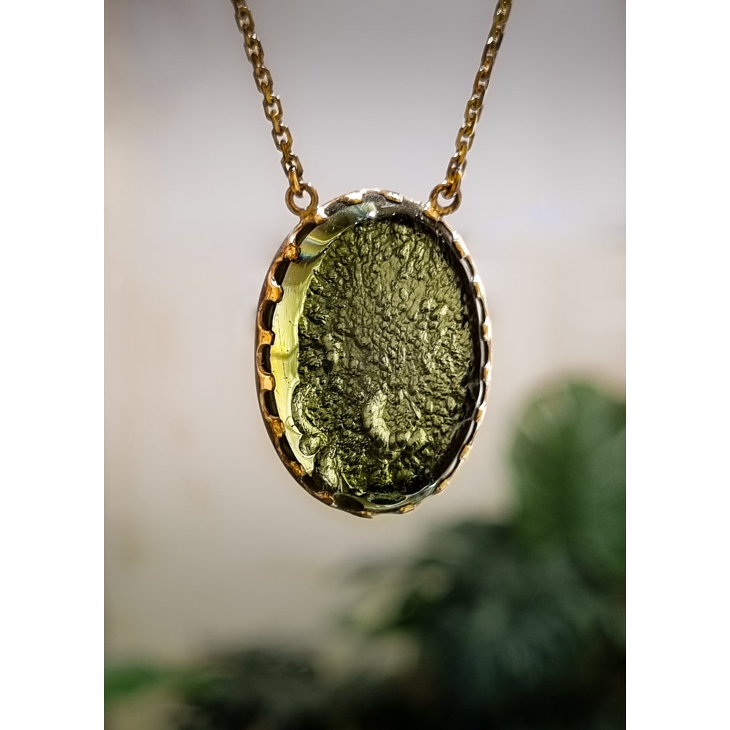 Elegantní zlatý náhrdelník s vltavínem, ovál P23 0010
