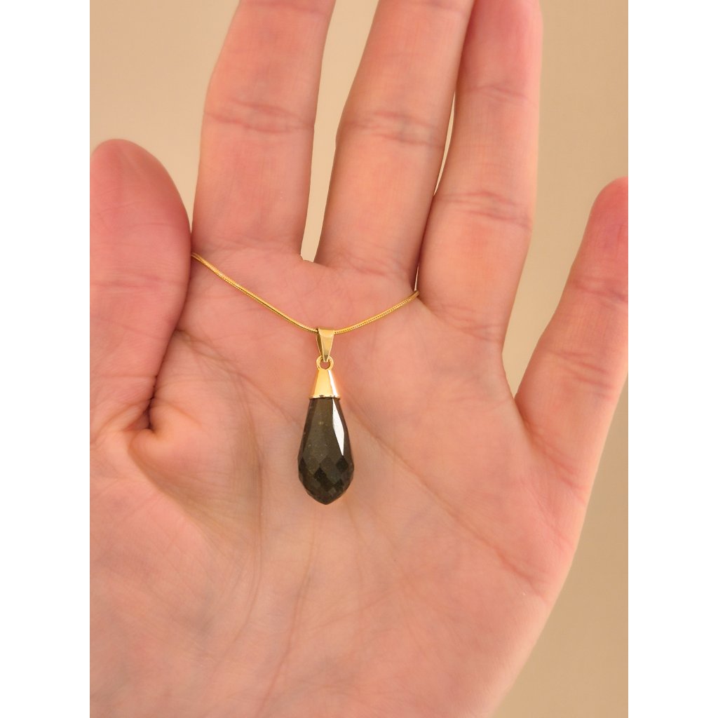 Elegantní zlatý přívěsek s broušeným vltavínem ve tvaru kapky P21 0086