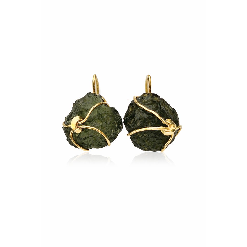 Gold earrings with raw Moldavite stones 2000048240008
