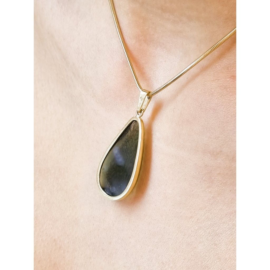 Luxury gold pendant with drop-shaped Moldavite P2000286720003