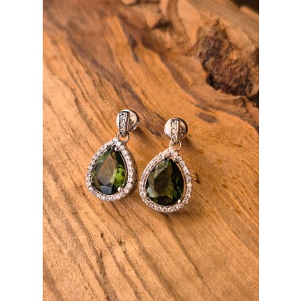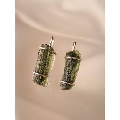 Choose from our wide selection of original earrings with moldavite. Each pair of moldavite earrings is unique, available exclusively with us. We carefully select moldavites from South Bohemian locations, ensuring that every piece is crafted to be a one-of-a-kind treasure. Our collection includes earrings with moldavite set in gold and silver.