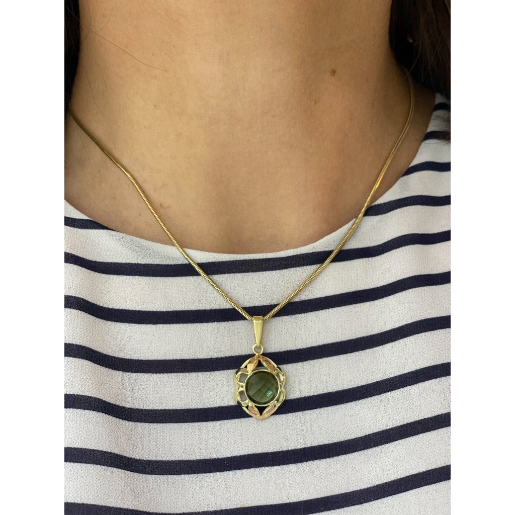 An interesting two-tone combination gold pendant in the shape of flowers. Precise work and design have come together and the result is a detailed, unusual piece of jewelry.
