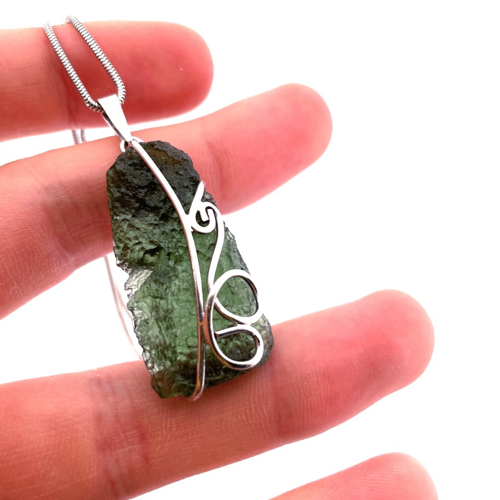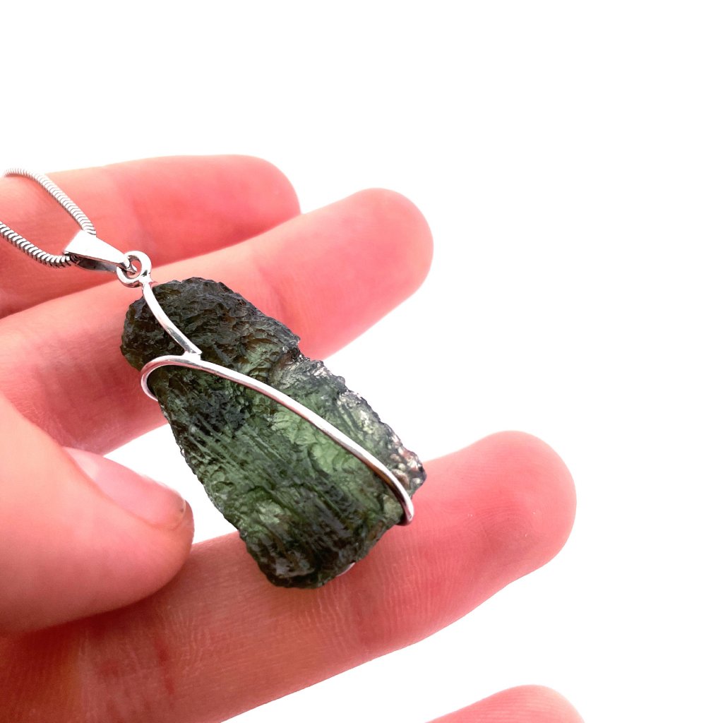 Silver pendant with raw Moldavite 2000067900006