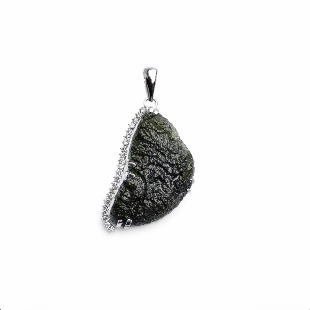 Silver pendant with raw vltavatine and zircons 2000150860002