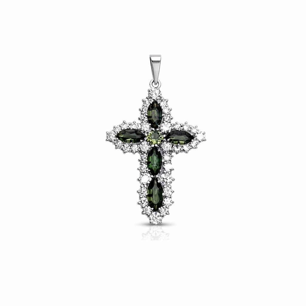 Silver cross pendant with cut diamonds and zircons 2000168740005