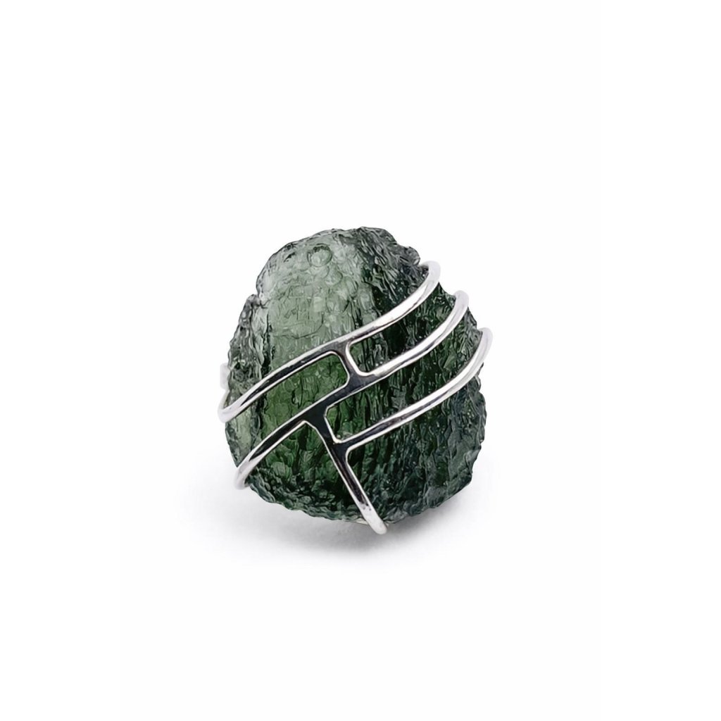 Silver ring with raw Moldavite 2000070850008