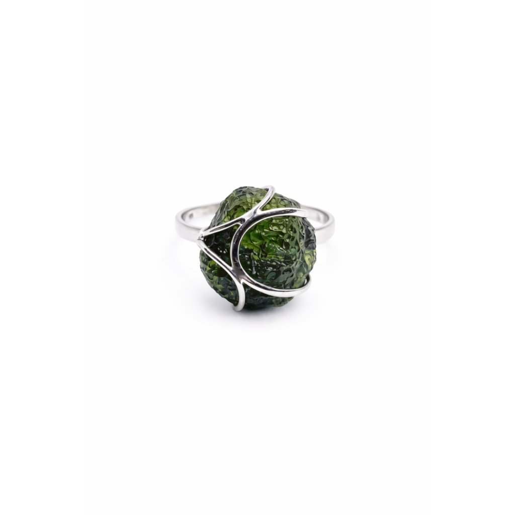 Silver ring with raw Moldavite 2000077080002