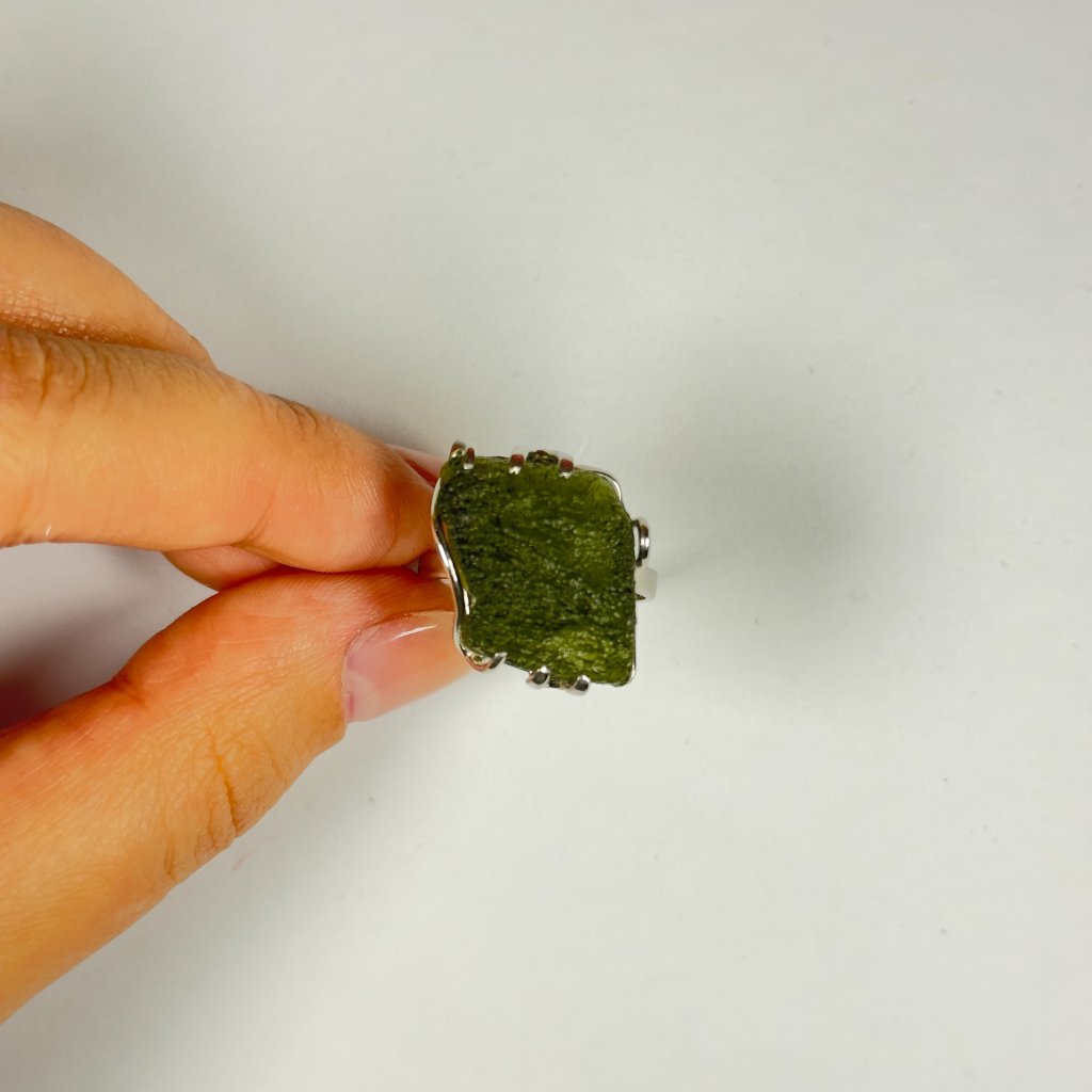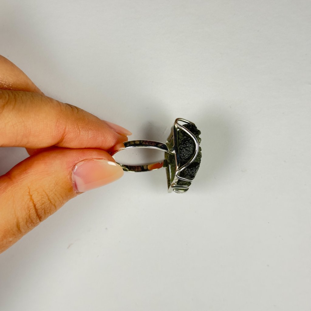 Silver ring with raw Moldavite 2000285670002