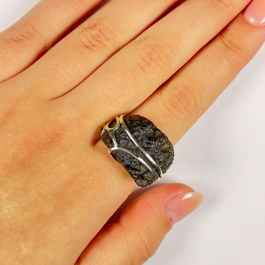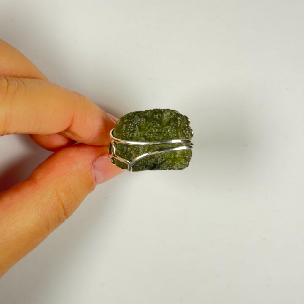 Silver ring with raw Moldavite 2000295550004