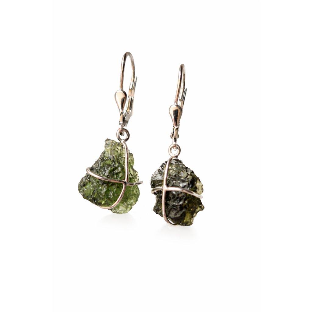 Náušnice ze stříbra s přírodními nebroušenými vltavíny