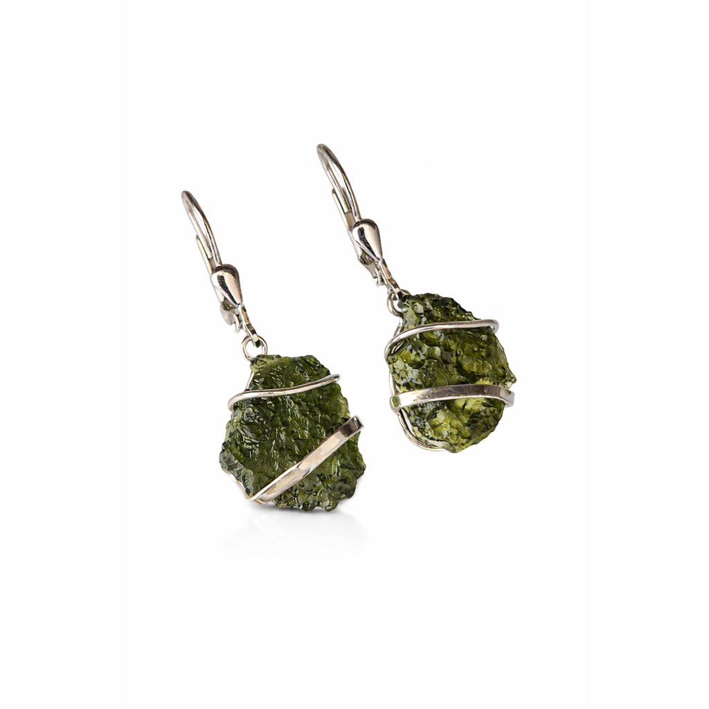 Náušnice ze stříbra s přírodními nebroušenými vltavíny