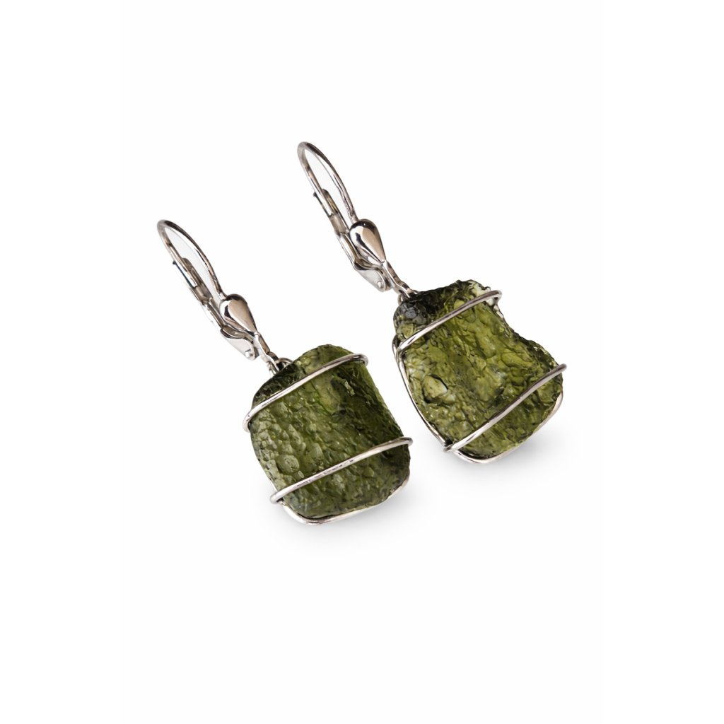 Náušnice ze stříbra s přírodními nebroušenými vltavíny