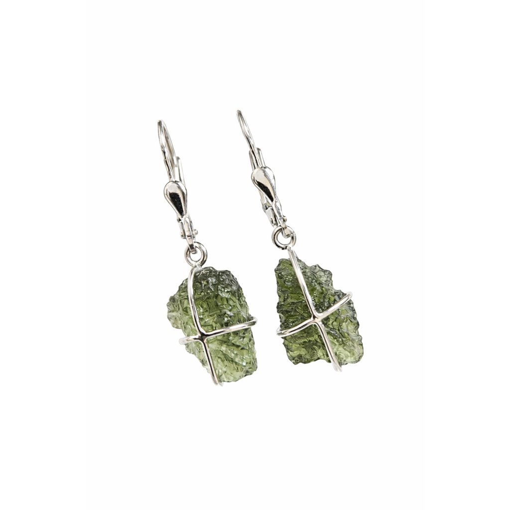 Stříbrné náušnice s přírodními nebroušenými vltavíny