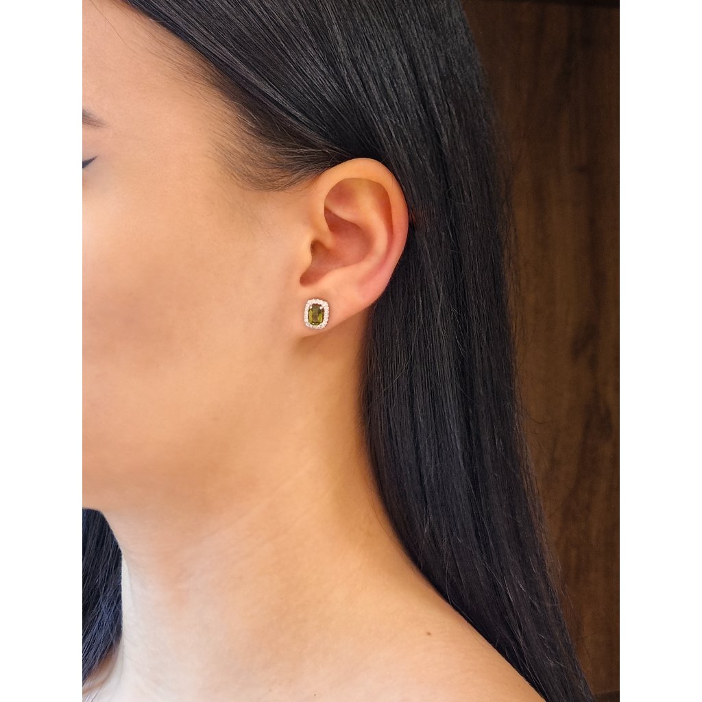 Silver earrings with Moldavite and zircons 2000332210007/2