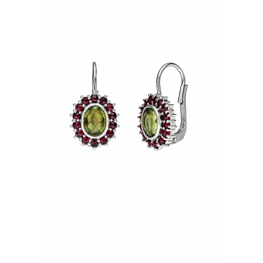 Stříbrné náušnice s vltavíny a granáty P32 0081