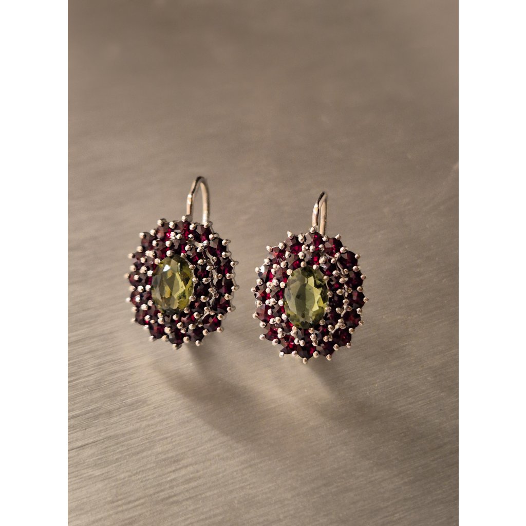 Stříbrné náušnice s vltavíny a granáty P46 00002