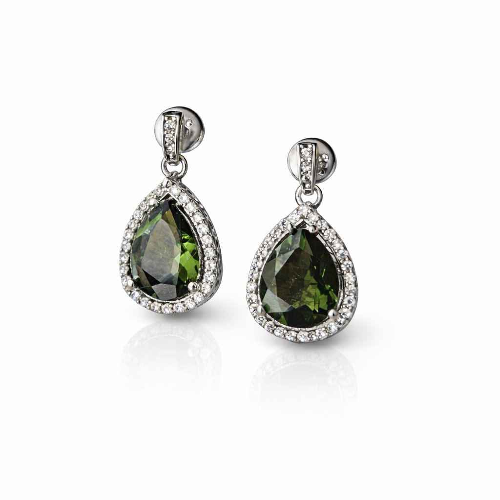 Stříbrné náušnice s vltavíny a zirkony 2000364960000