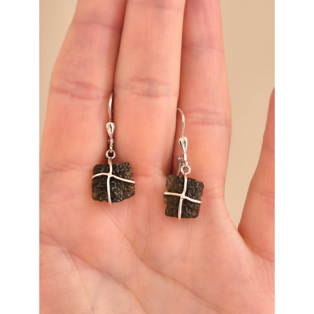 Náušnice ze stříbra s přírodními nebroušenými vltavíny