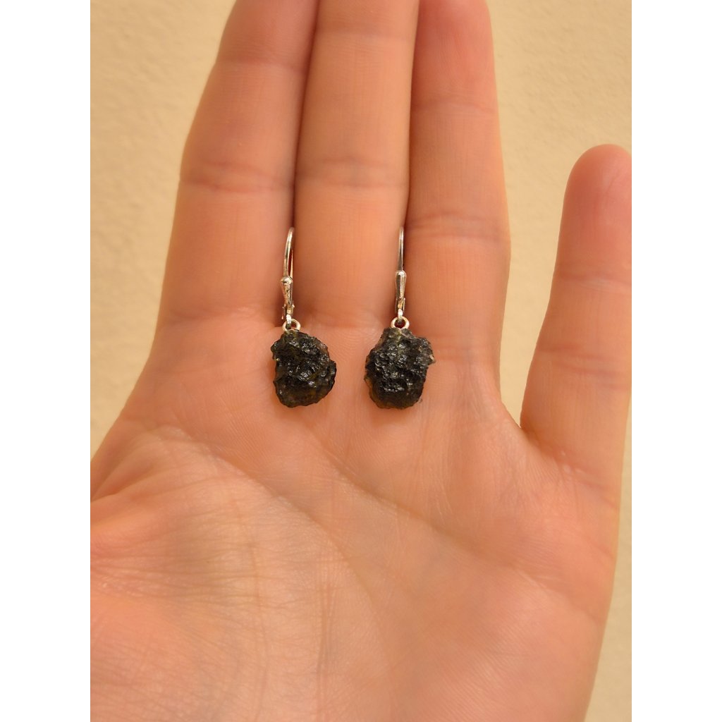 Minimalist earrings made of vltava are like a touch of the earth itself, soft yet full of strength. Each vltavín is unique, its sculpting and shapes tell the story of ancient times and deep secrets.