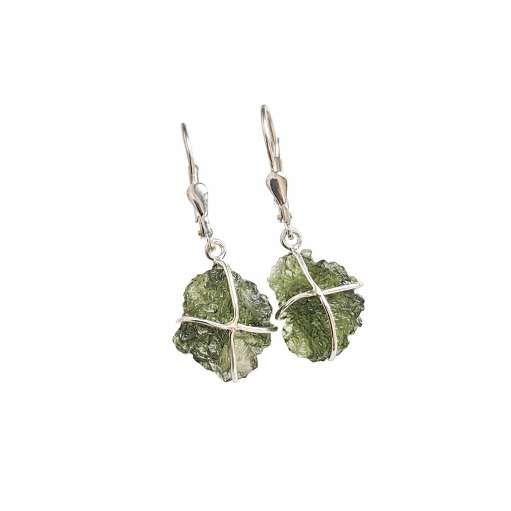 Náušnice ze stříbra s přírodními nebroušenými vltavíny