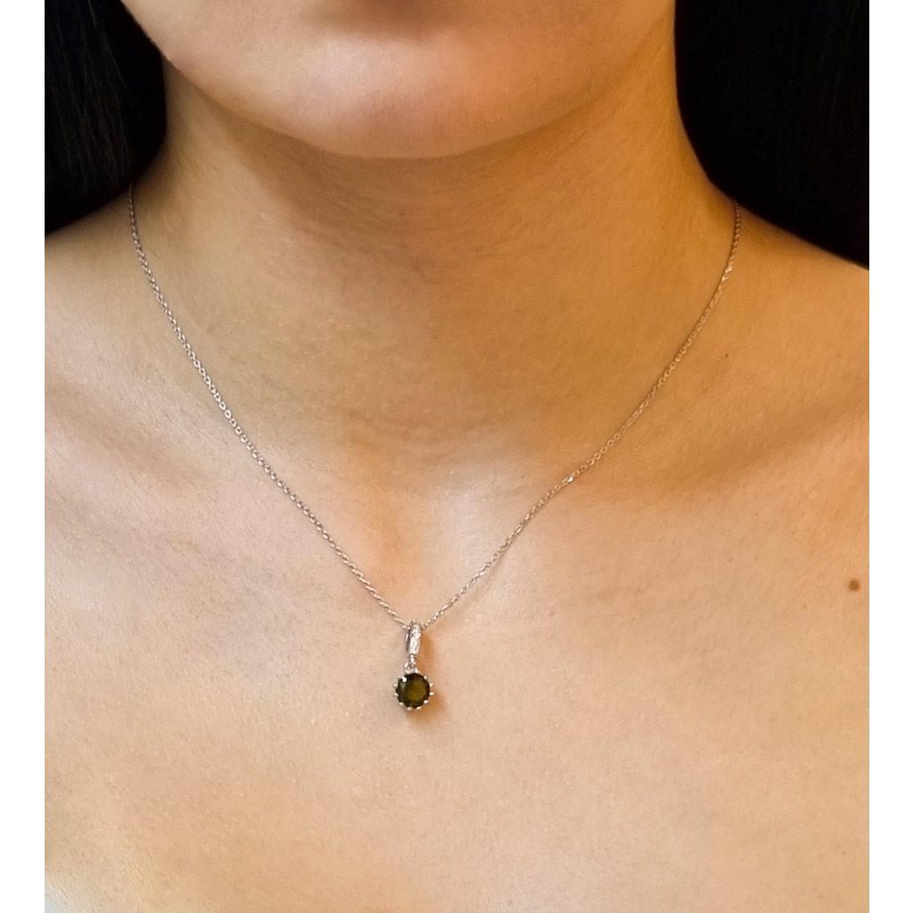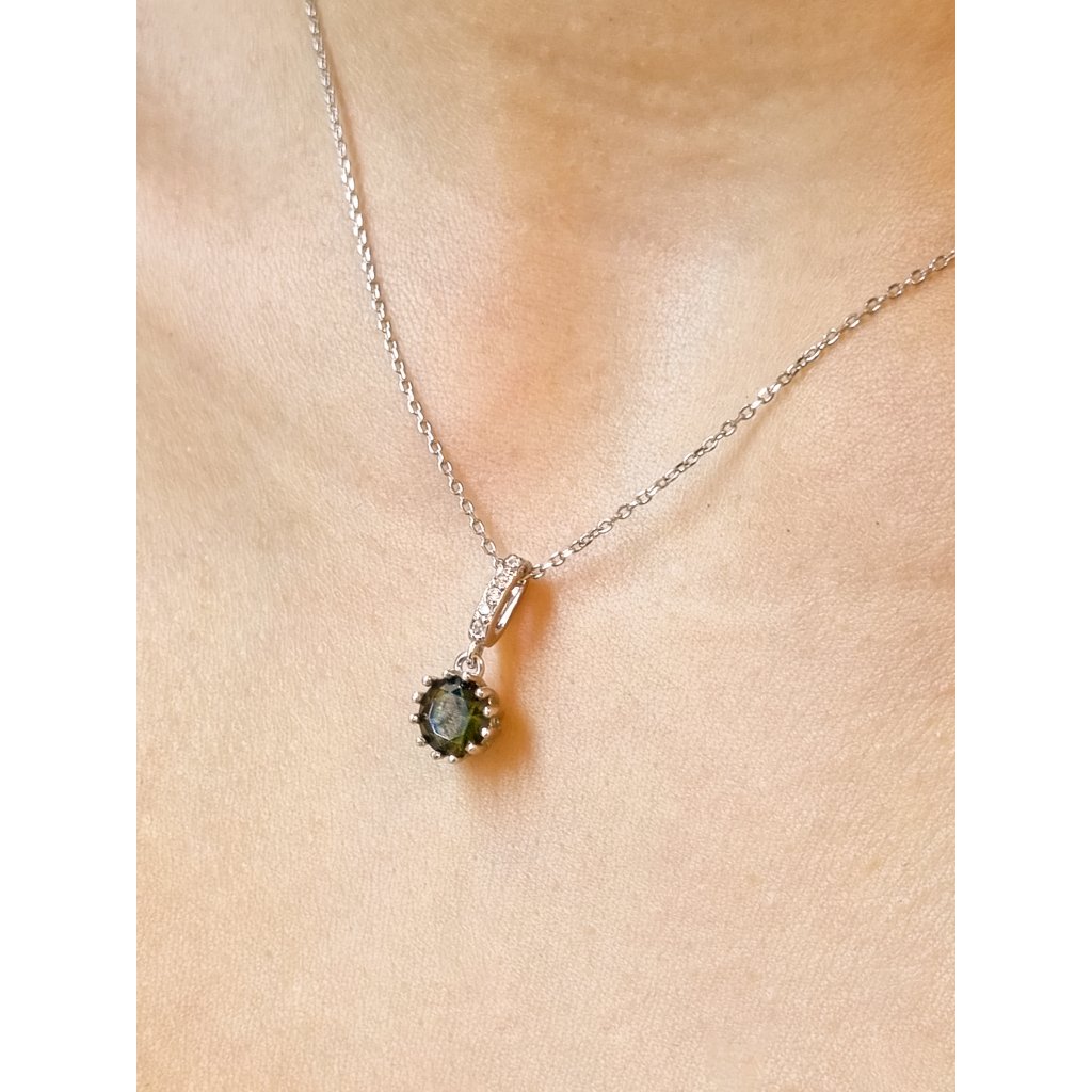 Silver necklace with cut Moldavite and zircons 2000332290009