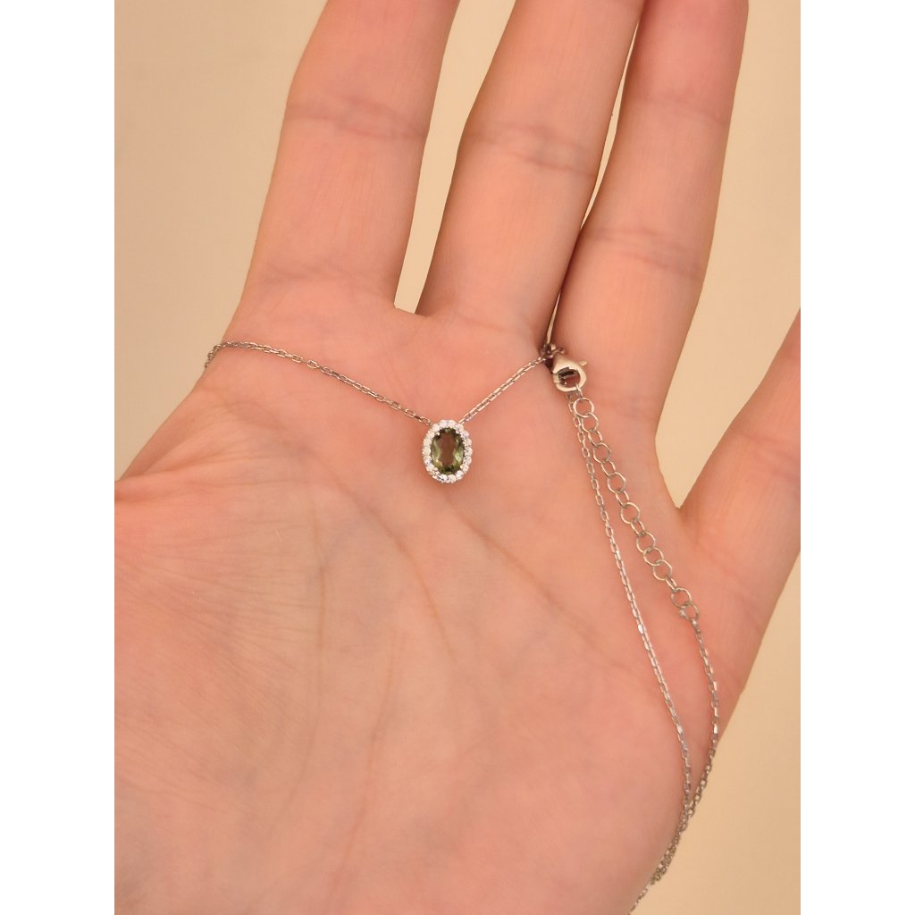 Stříbrný náhrdelník s vltavínem a zirkony 2000353080009