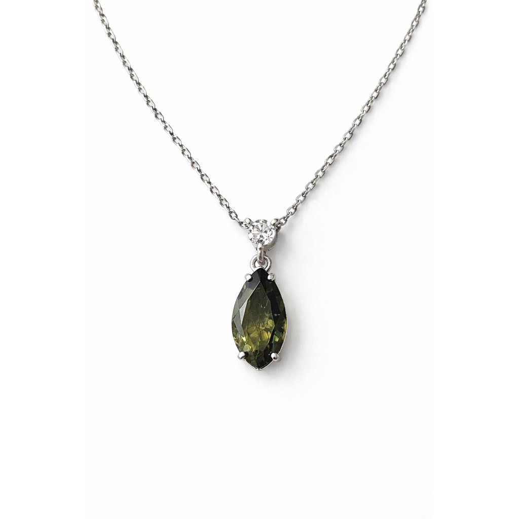 Stříbrný náhrdelník s vltavínem a zirkony P2000373030008