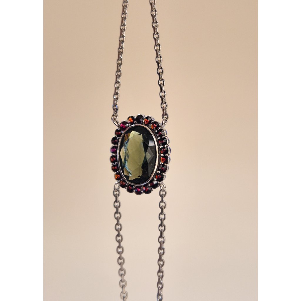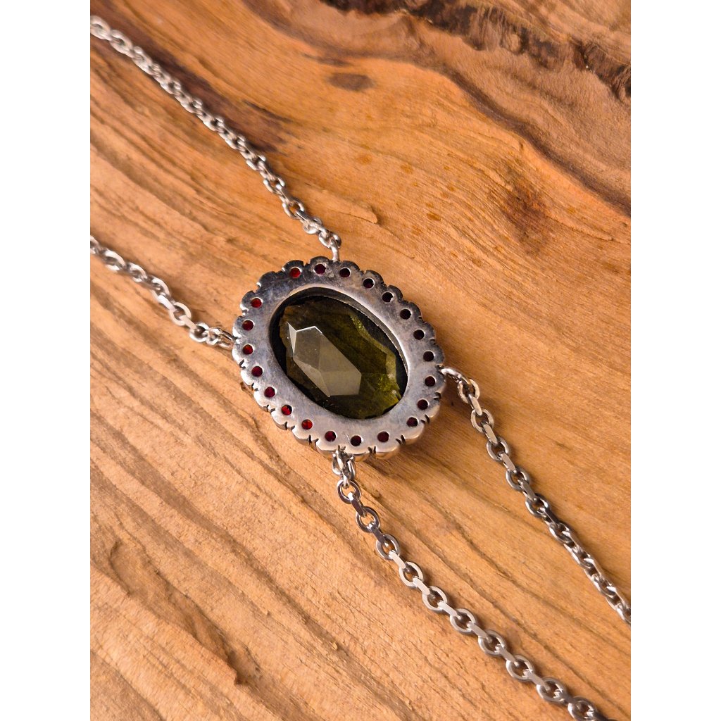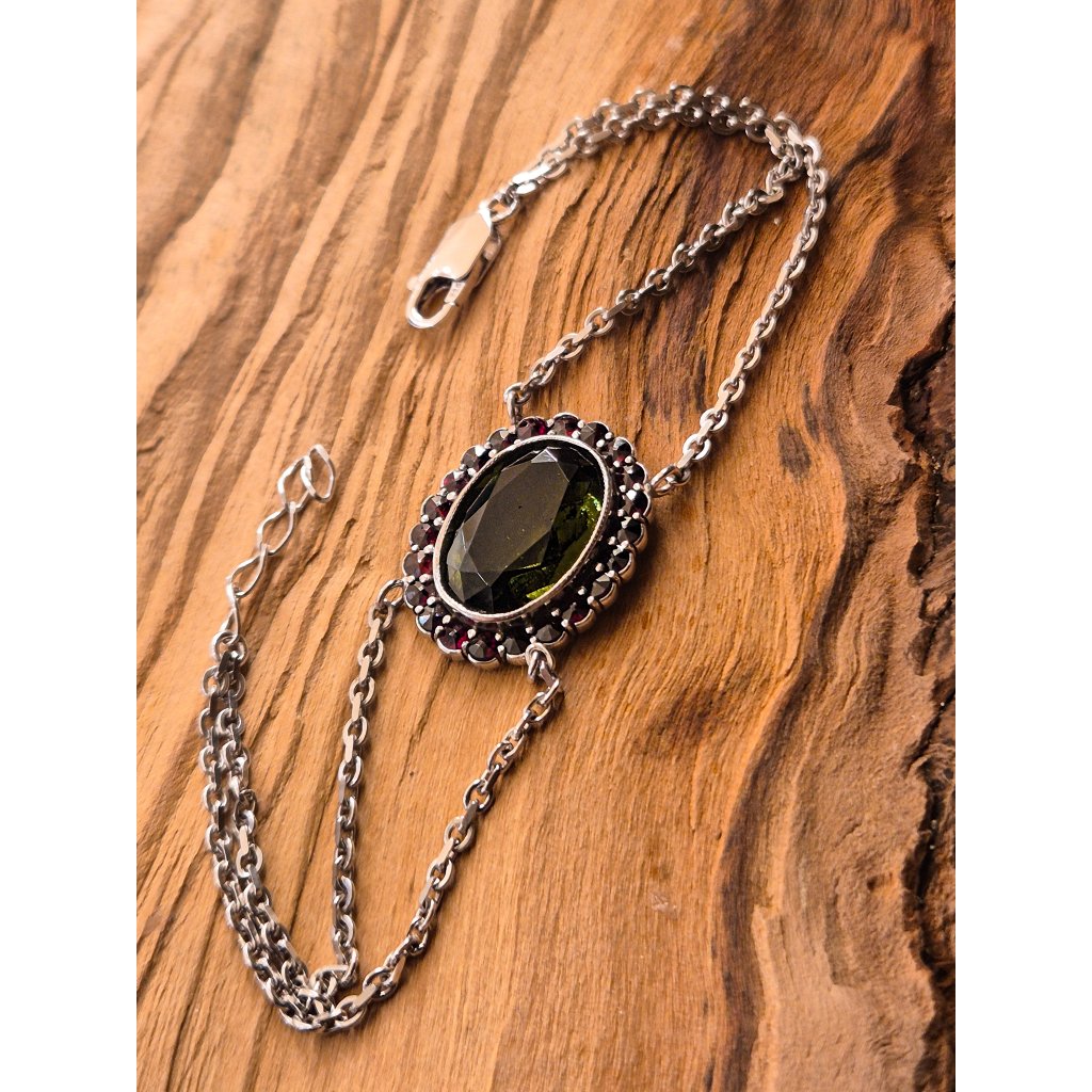 Stříbrný náramek s vltavíny a granáty 2000354440000