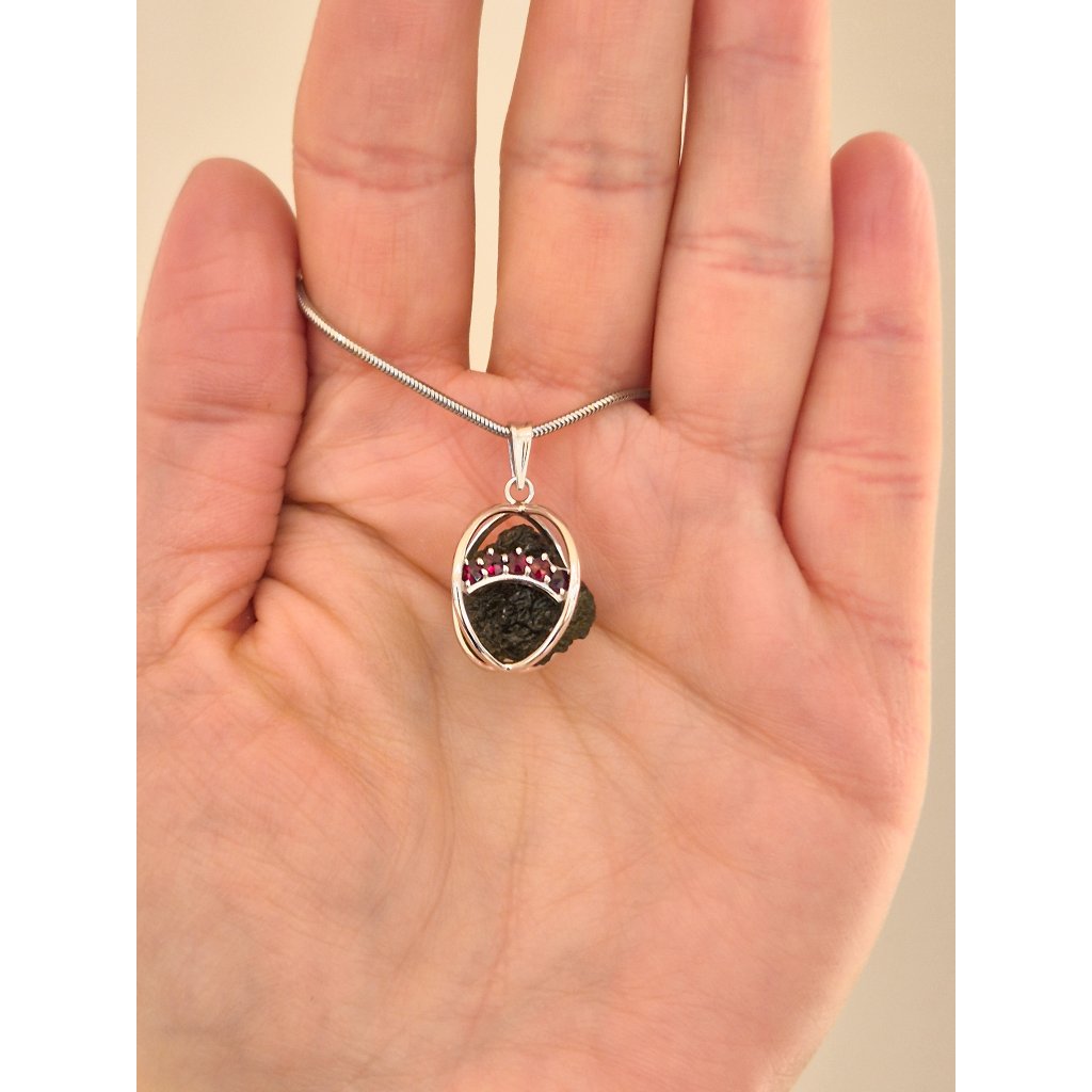 Stříbrný přívěsek s neopracovaným vltavínem a granáty P2000349890001