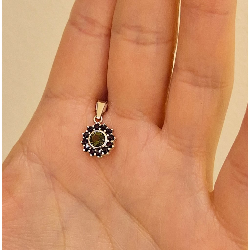 Silver pendant with Moldavite and garnets P2000261440001