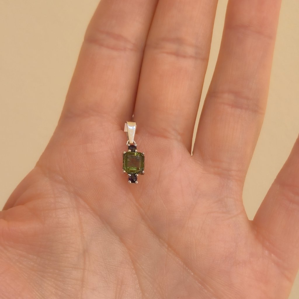Stříbrný přívěsek s vltavínem a granáty P31 0049
