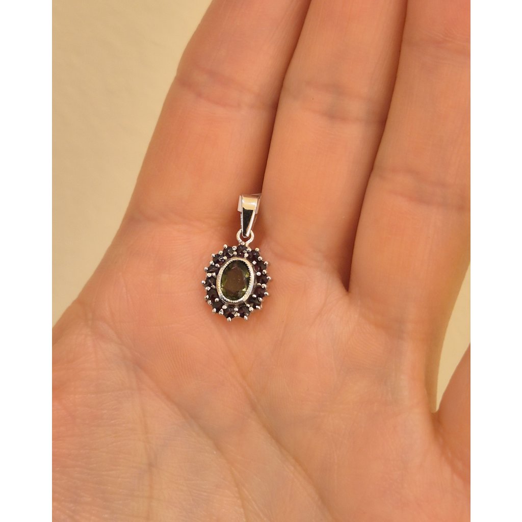 Stříbrný přívěsek s vltavínem a granáty P31 0050