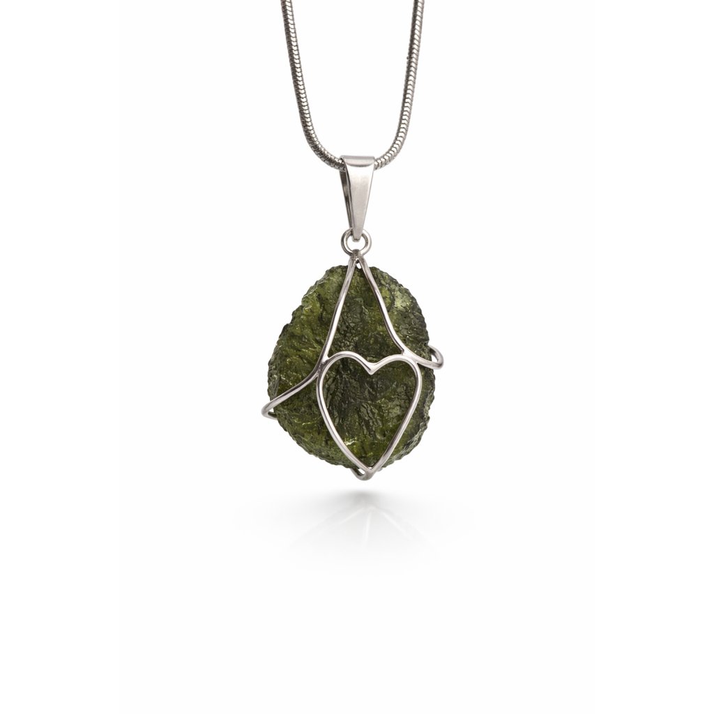 Stříbrný přívěsek s vltavínem s motivem srdce 2000371210006