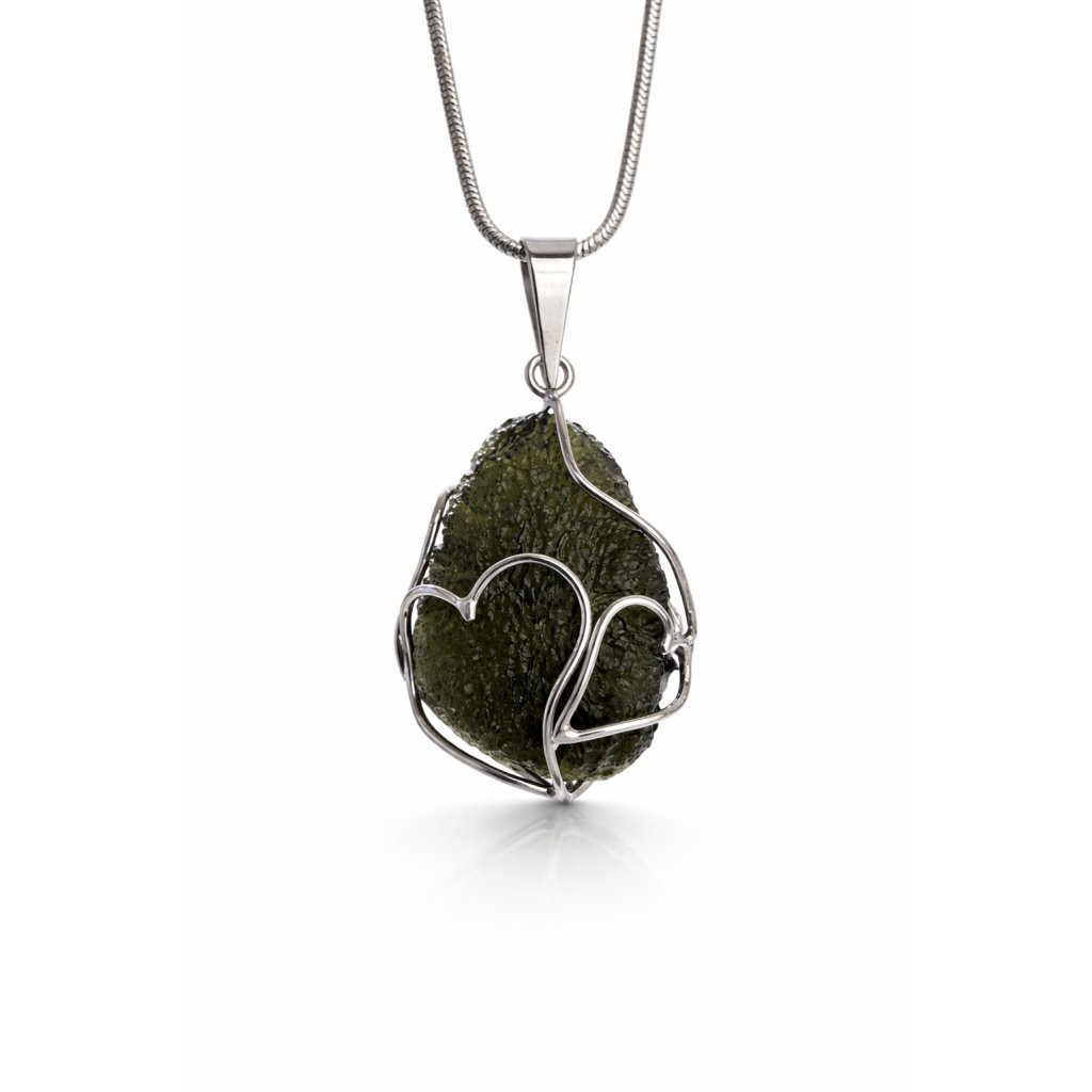 Stříbrný přívěsek s vltavínem s motivem srdce 2000371210006