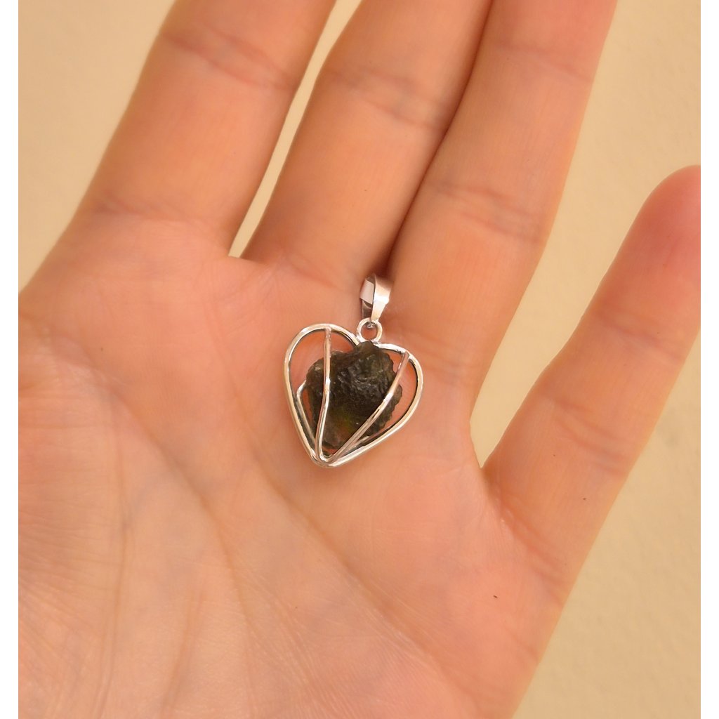 Stříbrný přívěsek s vltavínem srdce 37 0352