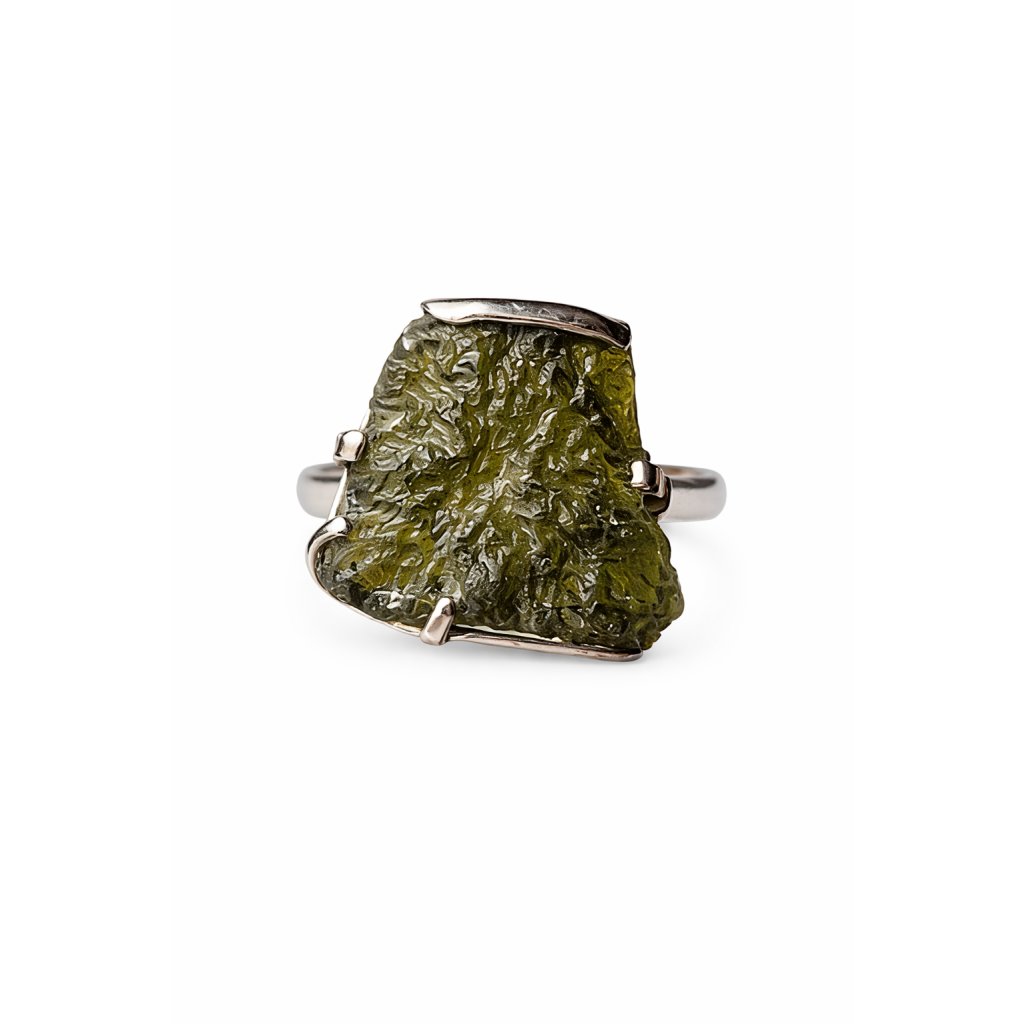 Stříbrný prsten s neopracovaným vltavínem
