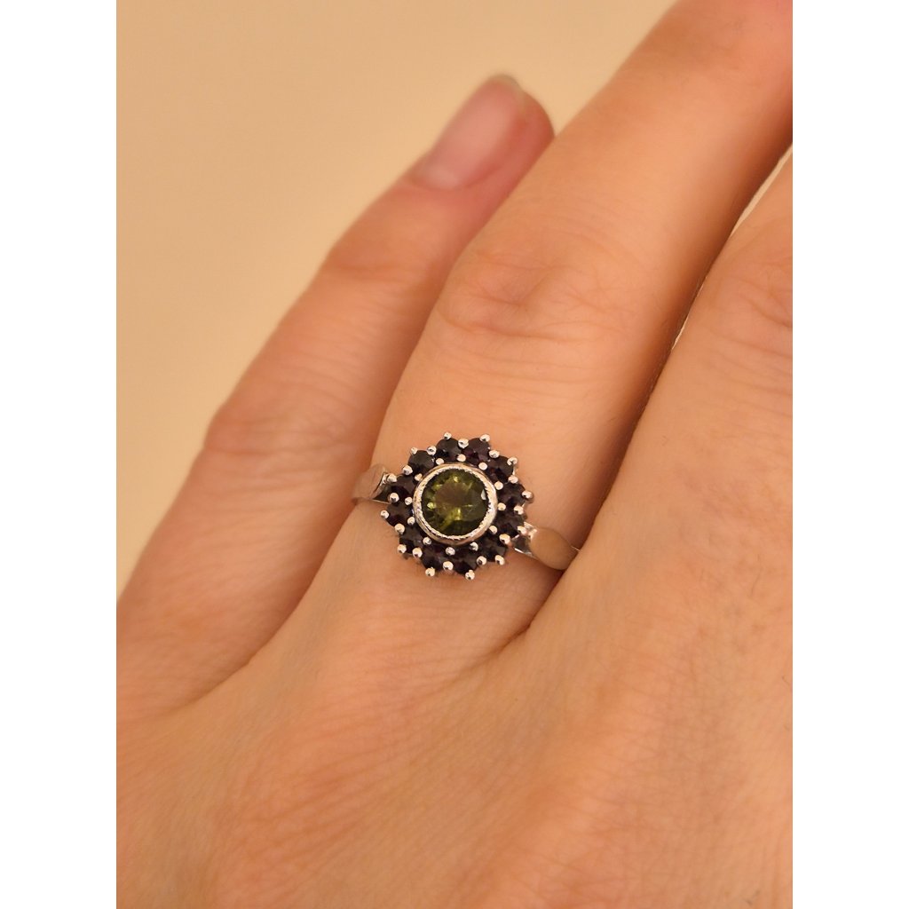 Stříbrný prsten s vltavínem a granáty P30 0078/55