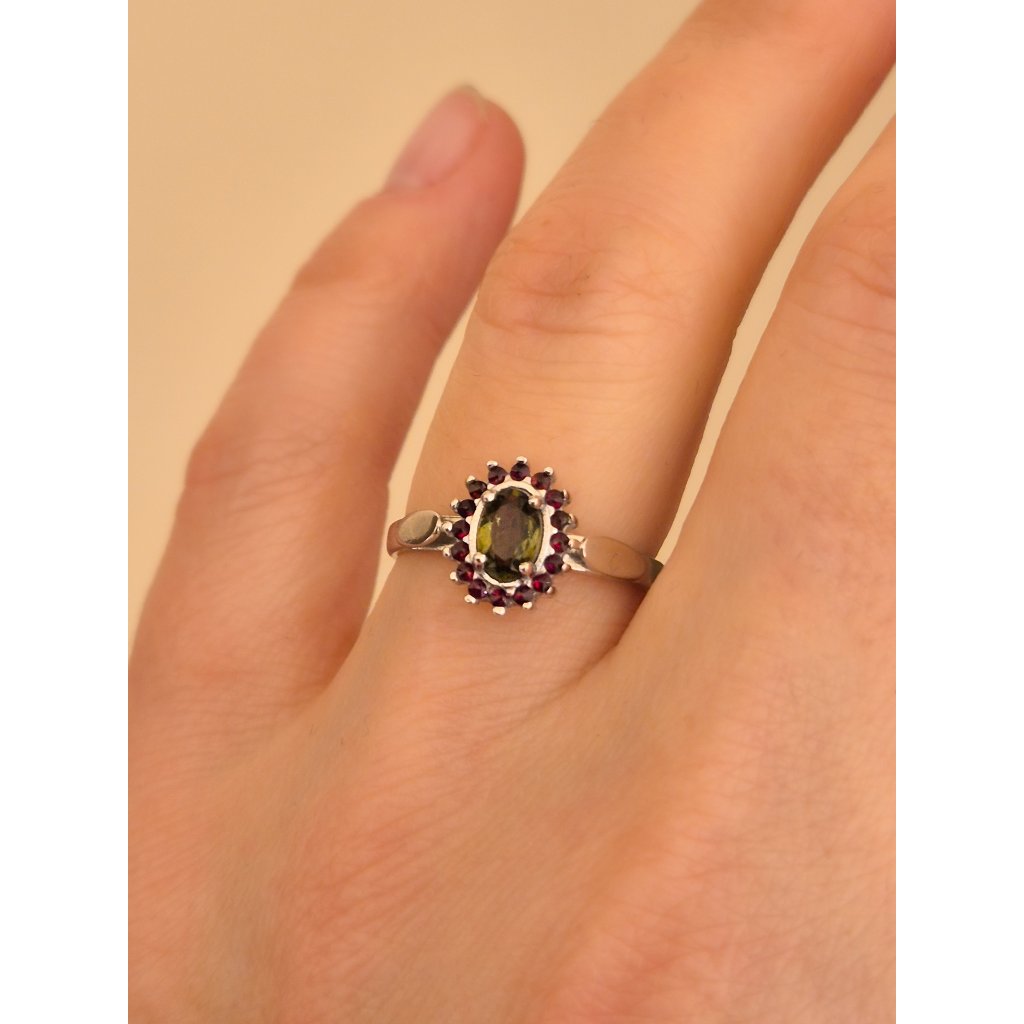 Stříbrný prsten s vltavínem a granáty P30 0080
