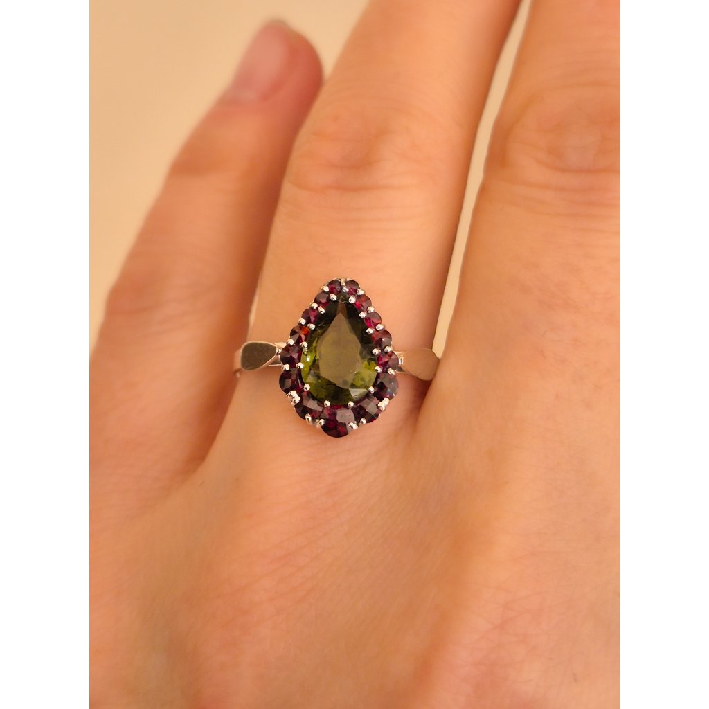 Stříbrný prsten s vltavínem a granáty P30 0085