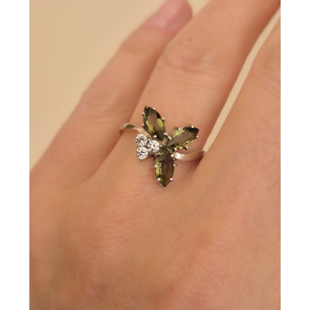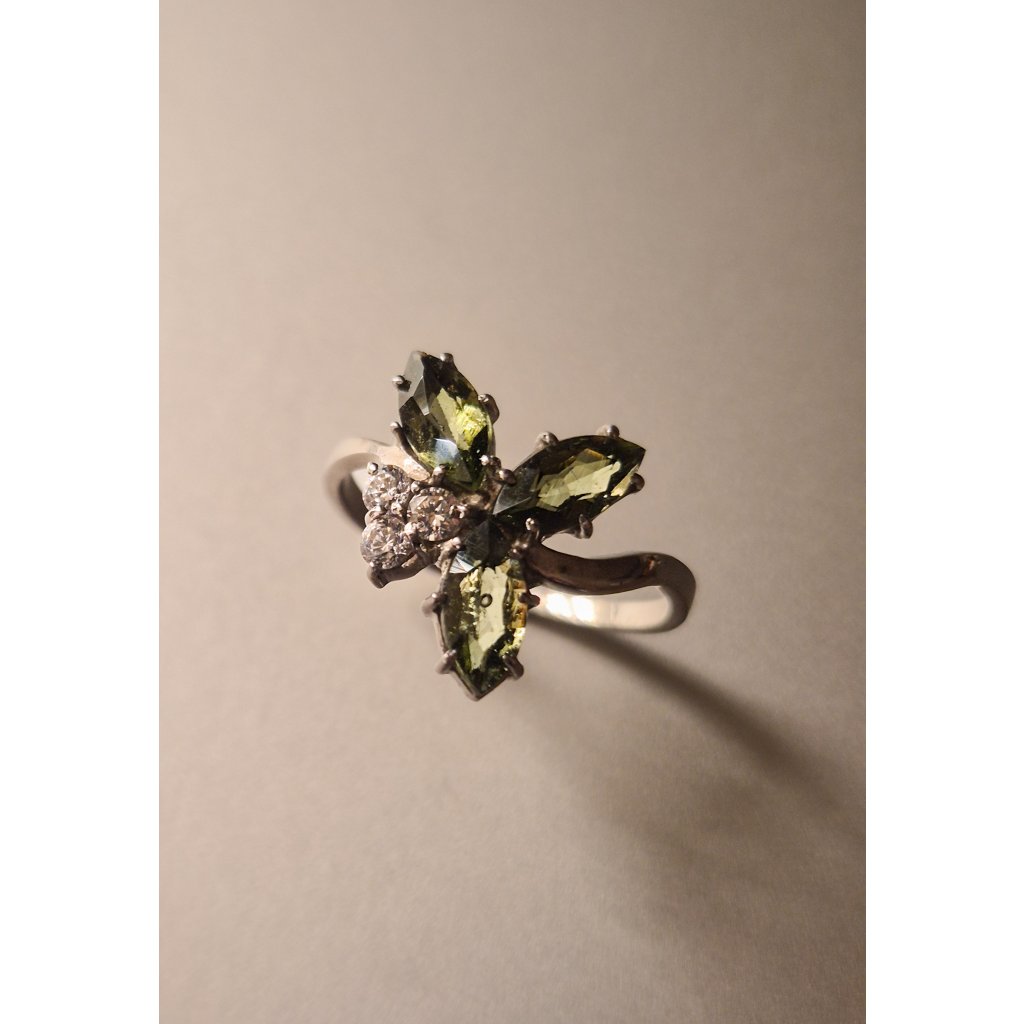 Stříbrný prsten s vltavínem a zirkony P2000289320002