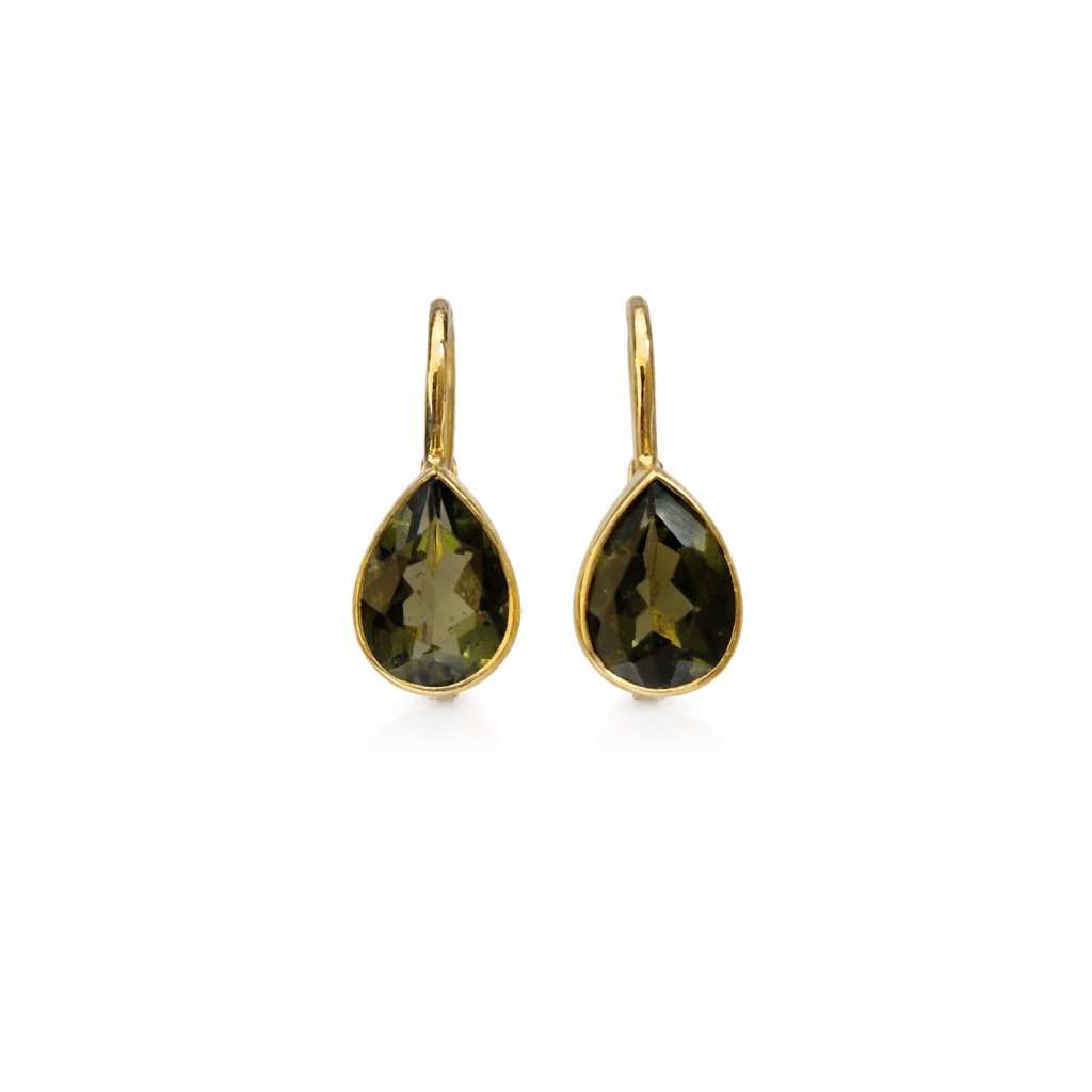 Zlaté náušnice s vltavíny ve tvaru kapek P2000372570000 P2000372580009