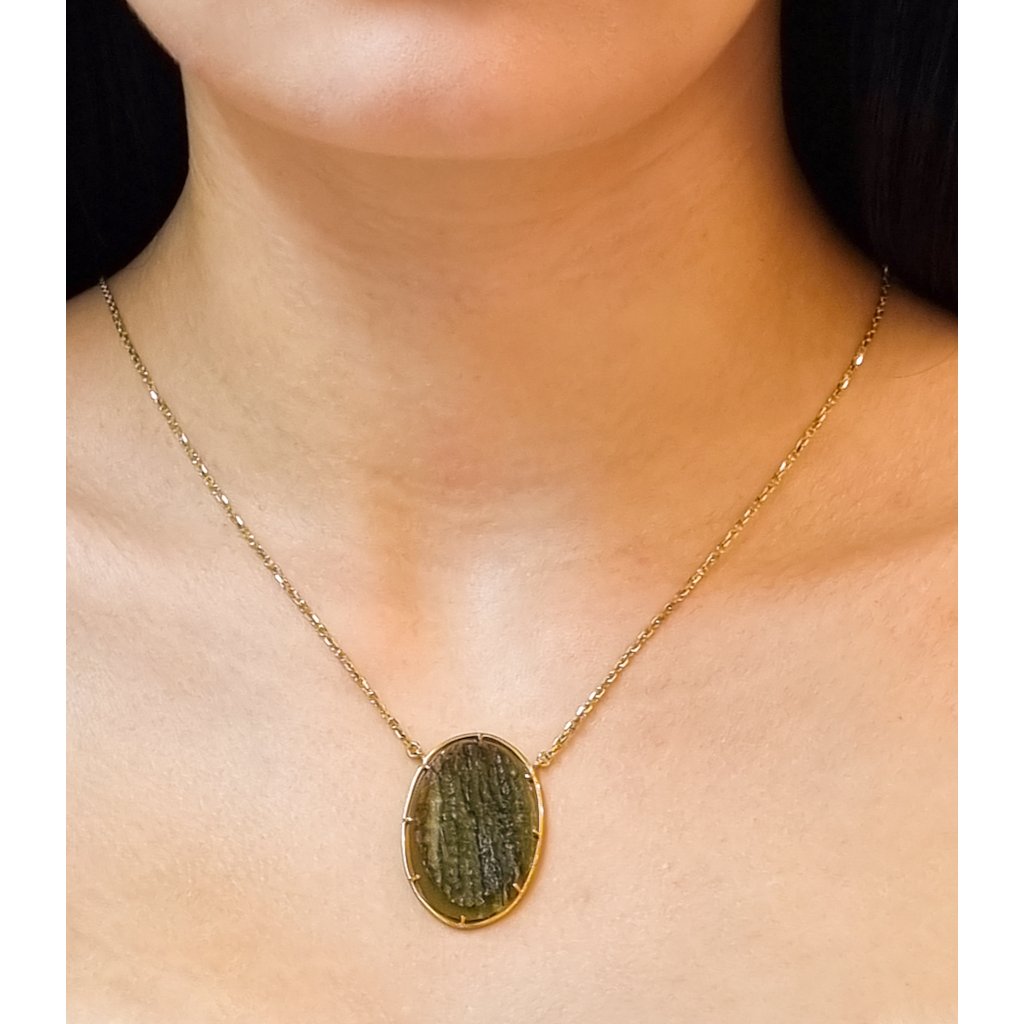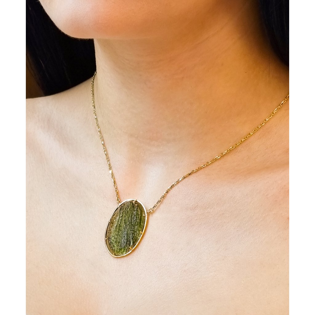 Gold necklace with Moldavite, semi-polished P2000312970006.