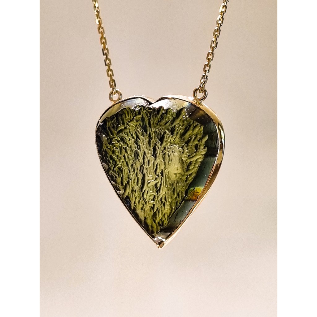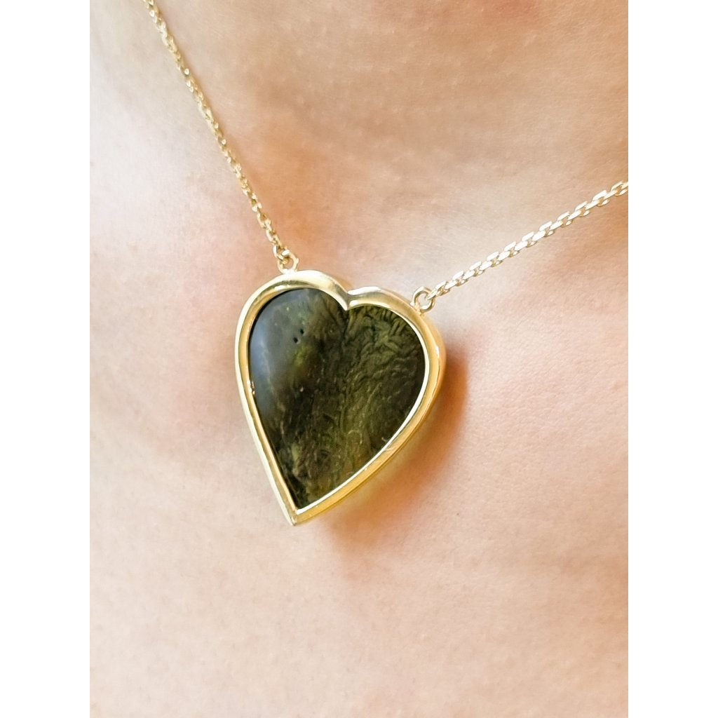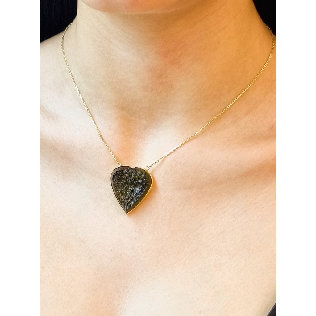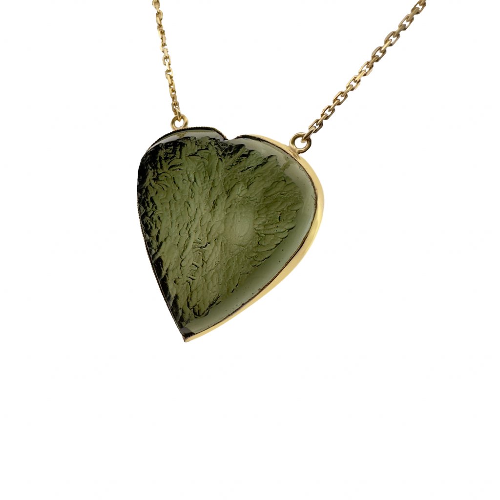 Gold necklace with Moldavite, heart, half cut 2000331020003