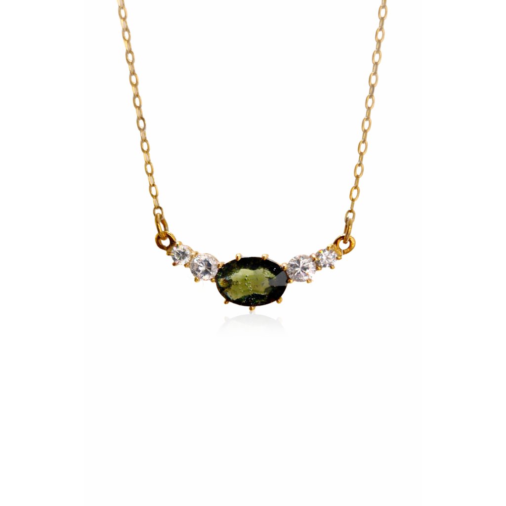 Gold necklace with Moldavite and zircons P2000313190007