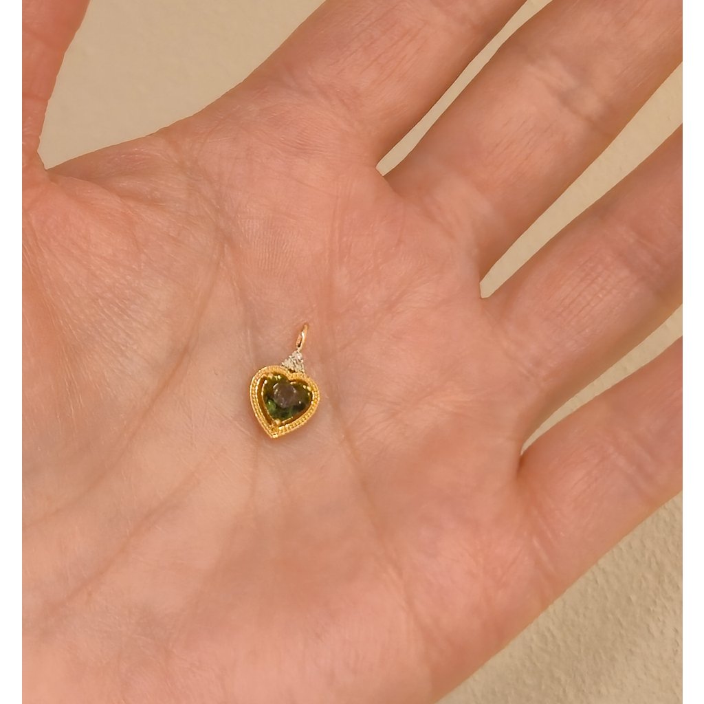 Embark on a journey of elegance and uniqueness with our gold pendant, which perfectly combines the rarity of Moldavite with the luxury of diamonds. This trailer is not only a piece of jewelry, but also a carrier of stories and emotions that will last for generations.