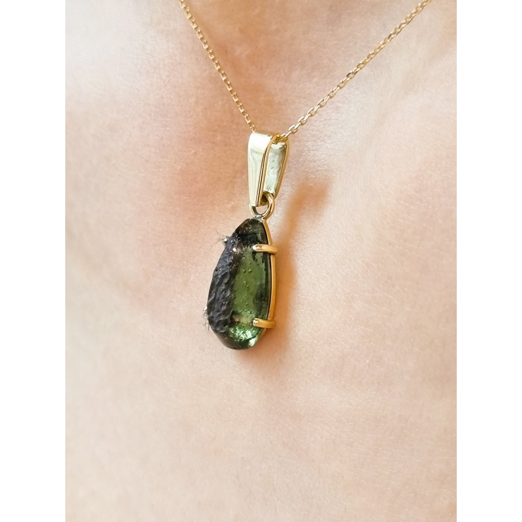 Gold pendant with Moldavite in the shape of a drop, semi-cut 2000331260003