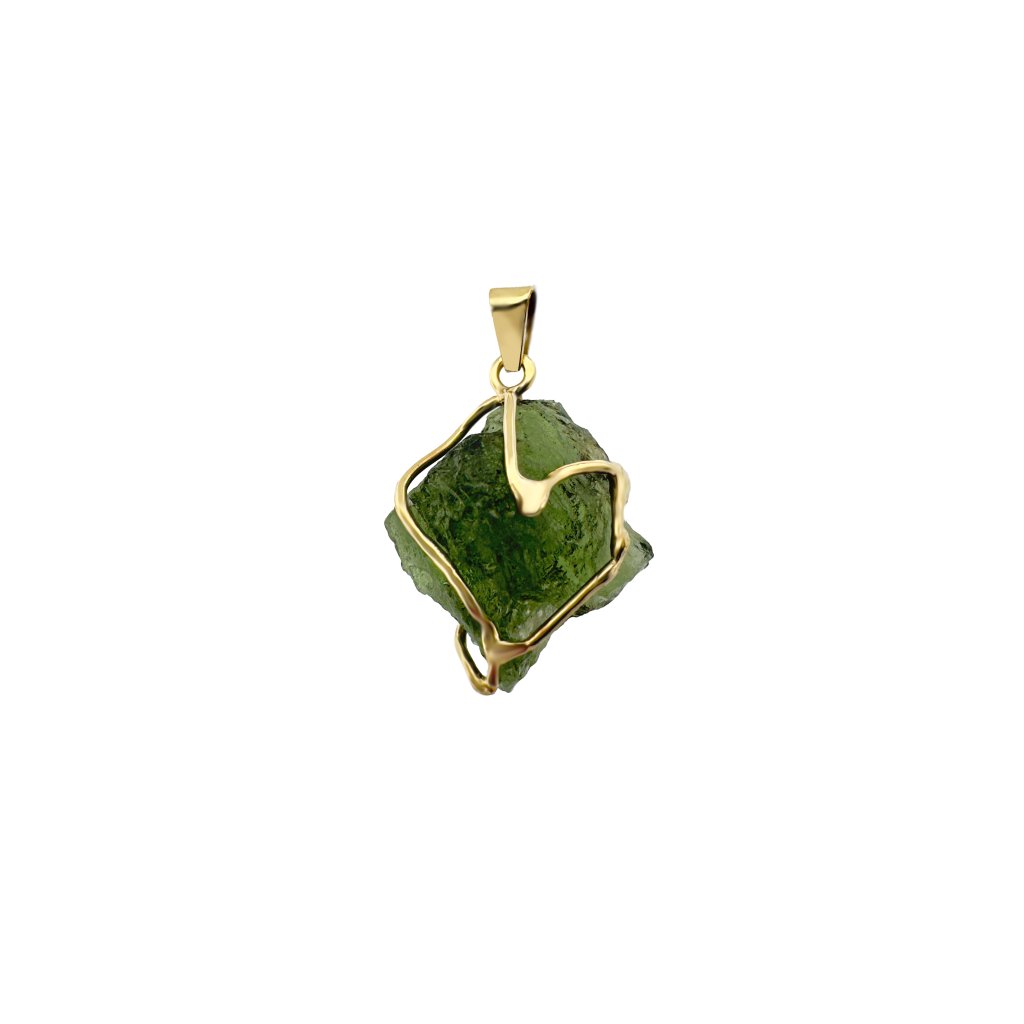 The gold pendant with uncut vltavín is an elegant jewel that celebrates the skill and imagination of Czech jewelers. Handcrafted design that emphasizes your uniqueness.