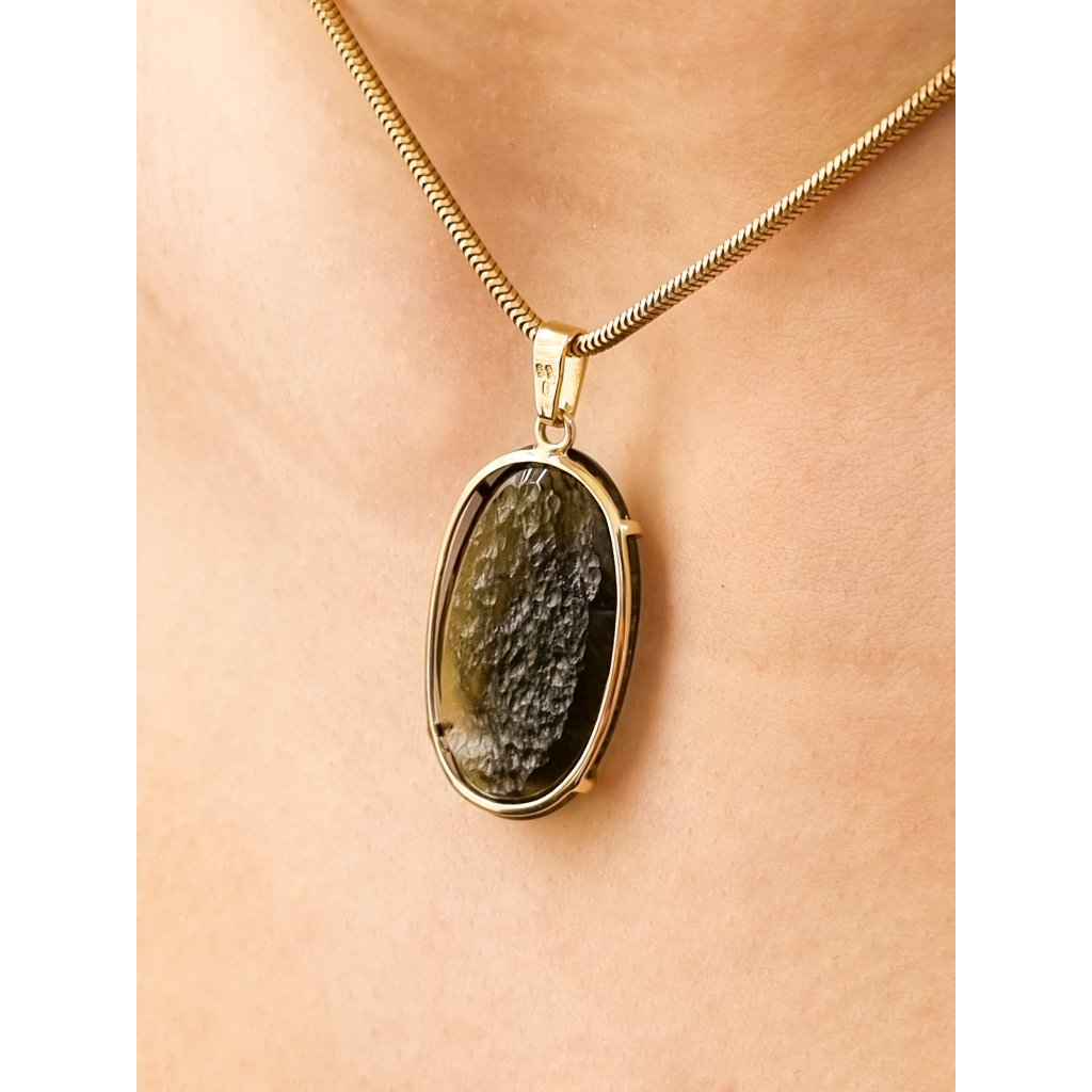 Gold pendant with Moldavite, oval, semi-cut P2000297510006