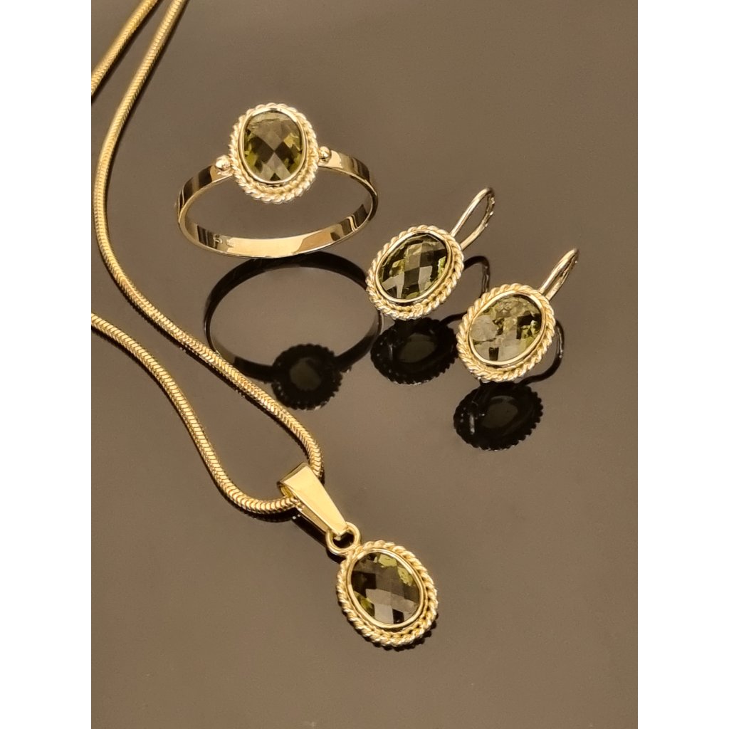 Zlatý prsten s broušeným vltavínem 2000344660005