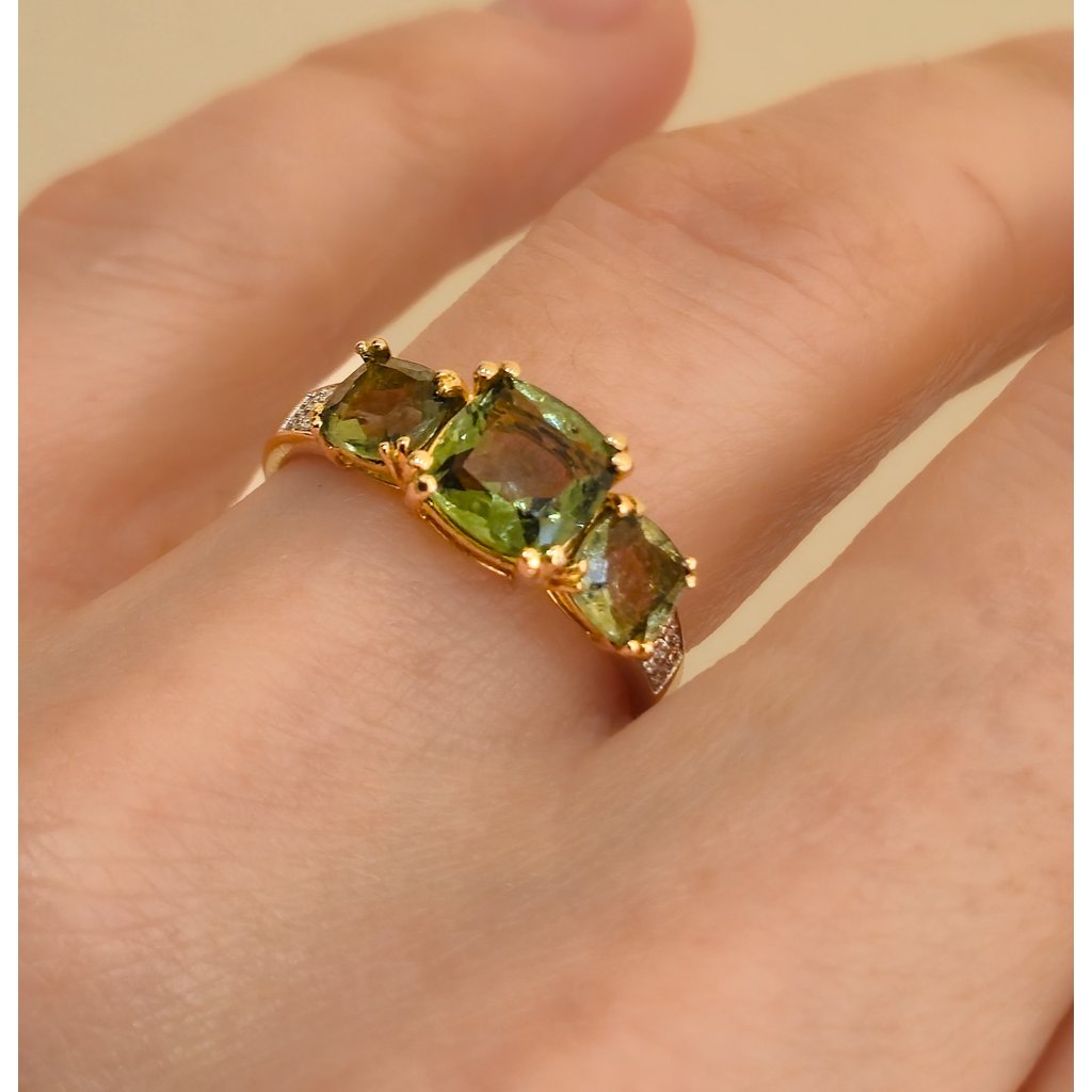 Discover charm and elegance with our luxurious gold ring, which is a masterpiece of goldsmith's art. This beautiful ring combines the rarity of Czech vltavín with the sparkle of diamonds, creating a piece of jewelry that is not only aesthetically impressive, but also rare and valuable.